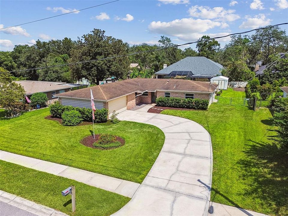 Welcome to this beautiful pool home in the heart of Brandon, offering peace of mind with no flooding or water intrusion reported during the owner’s seven-year residency. Enjoy the freedom of no HOA or CDD fees while living in a well-maintained and thoughtfully updated property. Go inside to find new engineered hardwood floors throughout the main living areas, creating a warm and cohesive feel. The open-concept layout seamlessly connects the kitchen, living room and dining room, ideal for entertaining and everyday living. The kitchen is a standout feature with real wood cabinetry, granite countertops, a Viking gas range, separate wall oven, and a remodeled layout (2019) that added a bar, extended counter and spacious pantry. Just off the kitchen and dining area is an oversized bonus room, ideal for a fourth bedroom, private office, den, playroom or game room. Both full baths have been stylishly updated—the guest bath in 2025 and the primary bath in 2023. A linen closet and dual hallway closets near the bedrooms offer generous storage. French doors from the living area lead to a covered and screened outdoor space, ideal for indoor-outdoor living. Beautiful pavers guide you to a large, cage-free pool complete with a safety fence, ideal for summer fun and weekend gatherings. A large shed on the property is equipped with electricity (30 amp with ability to make 60 amp) for woodworking or convert to a home office space and area for RV or boat next to it. The backyard also features a dedicated pergola with a firepit area, playset, chairs, additional shed, and outdoor gas grill that all convey with the home. Key updates include a (2020) air-conditioning system (last inspected and serviced in 2025), new water heater (2024), refrigerator (2019), garage door (2020), and septic system pumped in 2025. The roof is from 2014, and the gas-powered range, water heater, and pool heater access points offer efficiency and convenience. Just minutes from shops, grocery stores, boutiques, restaurants, health facilities, gyms and more, this home puts everything you need within easy reach. With quick access to the Crosstown Expressway, commuting to Tampa, TIA, MacDill AFB, and beyond is a breeze.