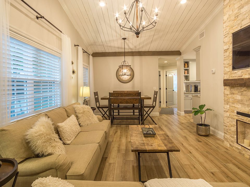 - Interior Layout: Kitchen/Family Room Combo, Split Bedroom