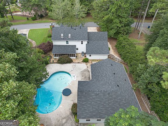 BRAND NEW ROOF BRAND NEW PRICE! WELL KEPT PEACHTREE CITY HOME WITH INGROUND POOL PLUS POOL HOUSE/INLAW SUITE!! Main Home consists of over 2000 square feet including well planned kitchen with loads of custom cabinets! Main floor also includes spacious dining room and living room open to bright and airy screened in porch. BONUS ROOM/4th BEDROOM upstairs along with three more bedrooms. Walk out to your very own HEATED SALT WATER POOL WITH HOT TUB!! This backyard is awesome! Relax, play games, watch tv or entertain in your new 1000+ sf POOL HOUSE!! Complete with Bathroom, Kitchen Area and Open Living Space! This space could easily be utilized as its own stepless IN LAW SUITE! This home has plenty of Garage as well with room for 2 cars plus your own space for a golf cart! There's so much to see. Bring your entire family to see this one! They will love it!