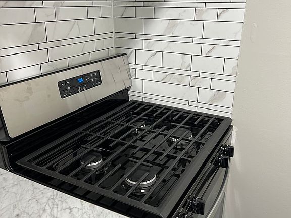 Sleek appliancesPrivate yardLarge bedroomAbundant cabinet spaceStylish backsplashBright windowWalk-in closet
