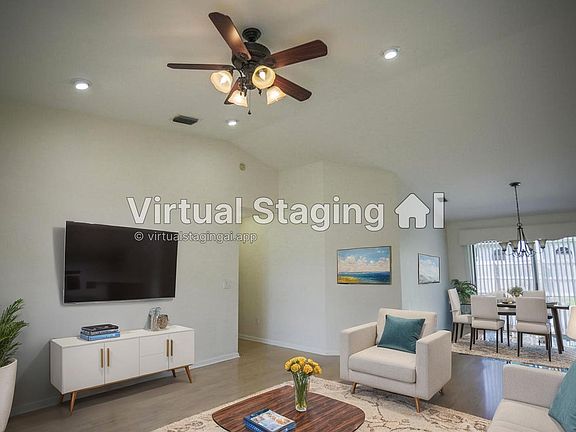 Located on a quiet cul-de-sac, this beautifully maintained 3-bedroom, 2-bath home features a bright eat-in kitchen with granite counters, tile backsplash, stainless steel appliances, snack bar, and walk-in pantry. Enjoy wood floors in the living and dining rooms with elegant window treatments and French doors.The master suite offers wood floors, two walk-in closets, and a ceiling fan. Relax on the screened patio overlooking a fenced yard with mature landscaping. Updates include exterior paint (2025), patio roof and screens (2020), water heater (2019), A/C (2017), and a very well-maintained roof (2006). Added features: generator transfer switch, lightning protector, panel shutters, irrigation system, and split floor plan Saratoga Pines offers great amenitiescommunity pool, 2 pickleball courts, tennis, basketball, playground, BBQ area, and a beautiful nature preserve within the communityall for just $45/month HOA.