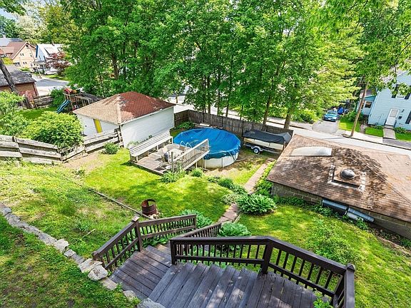 Tucked away on a less traveled street, nestled in it's own private oasis sits this awesome home with so much to offer. Step on the open side porch with scenic views and a bird's eye view of the private backyard boasting an above ground pool and deck area. With frontage on two streets, this home offers a unique setting. Spacious rooms, hardwoods, newer roof, boiler and windows, walk up attic and so much more! Two of fthe bedrooms are off the full bath (Hollywood Bath). Main bedroom has two closets. Sun Room (enclosed porch) could also be used as a Mud Room. Off street parking, 2 car garage, walk out basement. Tons of storage.