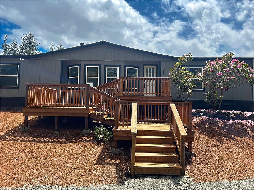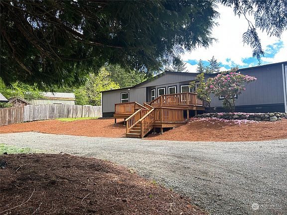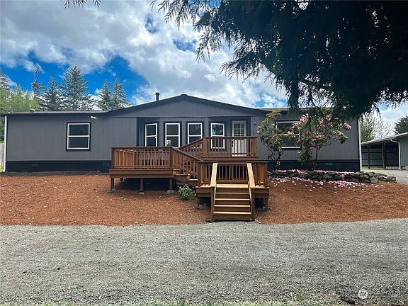 Beautifully updated 3 bed 2 bath manufactured home with mountain views sitting on just over 1.25 acres. Enjoy a country setting while still being minutes from town. This home features brand new laminate hardwood and carpet throughout, a complete kitchen makeover, a new ductless unit and heat pump, a formal living room and separate family room, a walk-in closet in every bedroom, a gorgeous new front deck, and a peaceful covered back patio! Plenty of parking space with a 3-bay carport and freshly graveled driveway, along with a spacious workshop for all of your hobbies or storage.