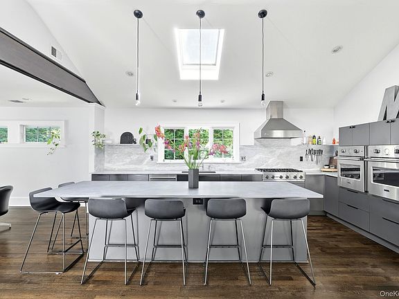 Circa 2007. Located in one of Upper Nyack’s most desirable locations, this exceptional custom contemporary home showcases impeccable design and craftsmanship—where classic architectural lines meet luxurious modern living. Every element, from the millwork to the materials, reflects quality and elegance. Over 3,700 sq ft of living space plus additional bonus space captures the perfect balance of timeless design and luxury. Nestled on a beautifully landscaped .56 acre lot, with South facing exposure, filling the home with natural light year-round. The heart of the home is an oversized chef’s kitchen with a vaulted and beamed ceiling complete with skylight, expansive marble counters, oversized center island with a modern quartz countertop, Viking double ovens, walk-in pantry outfitted with hand crafted built-ins for ideal organization, oversized Sub Zero fridge plus additional beverage and freezer drawers —designed for both everyday living and effortless entertaining. Glass doors off the kitchen open to a beautiful bluestone patio and fully fenced backyard, framed by mature plantings and custom built stone walls creating a serene, private retreat. Smartly designed side mudroom entry allows ease of living into the kitchen wing, with full bath, bonus/flex room and well appointed laundry room. The welcoming and spacious front porch with dramatic stone columns and dual entrances lead to the large open foyer with double closets. The elegant and impressively scaled living and dining rooms with a reclaimed brick, wood-burning fireplace, elevated 9-foot ceilings, plus a versatile family room perfect for work or relaxation, and an additional half bath. The primary suite feels like a sanctuary, offering a vaulted ceiling, oversized walk-in closet, and spa-inspired bath with designer tile, double vanities and a luxurious walk-in shower. An additional three, well proportioned and bright bedrooms with spacious closets, and a full tiled bath complete the second level. The lower level adds tremendous flexibility; adjacent to the oversized 2 car garage is a large finished bonus room featuring soaring ceilings—ideal for playroom, studio, work space or gym—plus a full walkout basement ready to customize. The entire home is heated with multi-zoned radiant heating offering a most luxurious comfort that is quiet and invisible. Wide-plank wooden floors throughout, multi-zone central A/C, and expansive windows create an inviting atmosphere of warmth and comfort. Close to Hook Mountain, Nyack Beach, River Hook and all Nyack Village has to offer. Graceful and generous proportions, plus exquisite craftsmanship throughout make this home one of a kind.