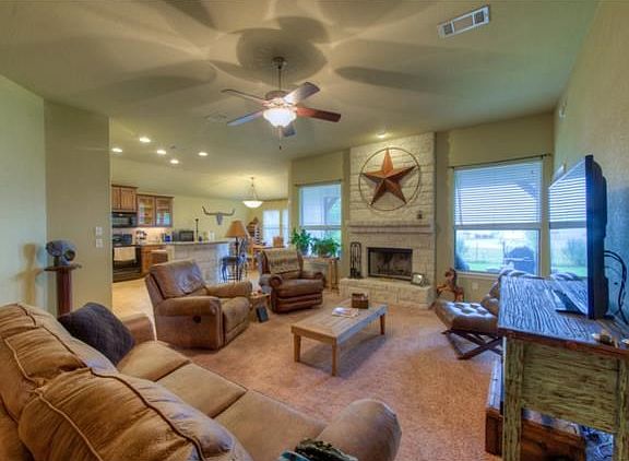 Home in great condition, nice landscaped yard with fenced back. covered patio. Home is open living concept with split bedroom plan. neutral colors. Kitchen has lots of cabinets, some with glass doors. Wonderful breakfast bar. This home has so many features it is a must see for this price.