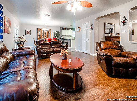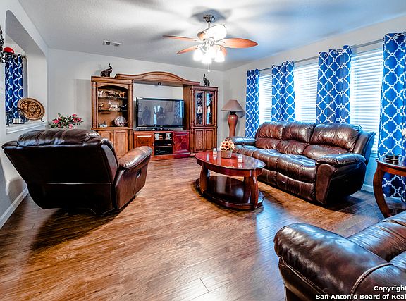 Beautiful 2 story home located in Cibolo Valley Ranch subdivision that features an open floor plan with 3 bedrooms 2.5 baths, all bedrooms and game room upstairs. Beautiful wood like and ceramic tile flooring downstairs, large living area that opens up to the updated kitchen with granite counter tops & stainless steel appliances. Nicely sized master bedroom with tub/shower combo & double vanity, with large secondary bedrooms that have walk in closets, and game room. Large backyard with a 14x11 patio slab.