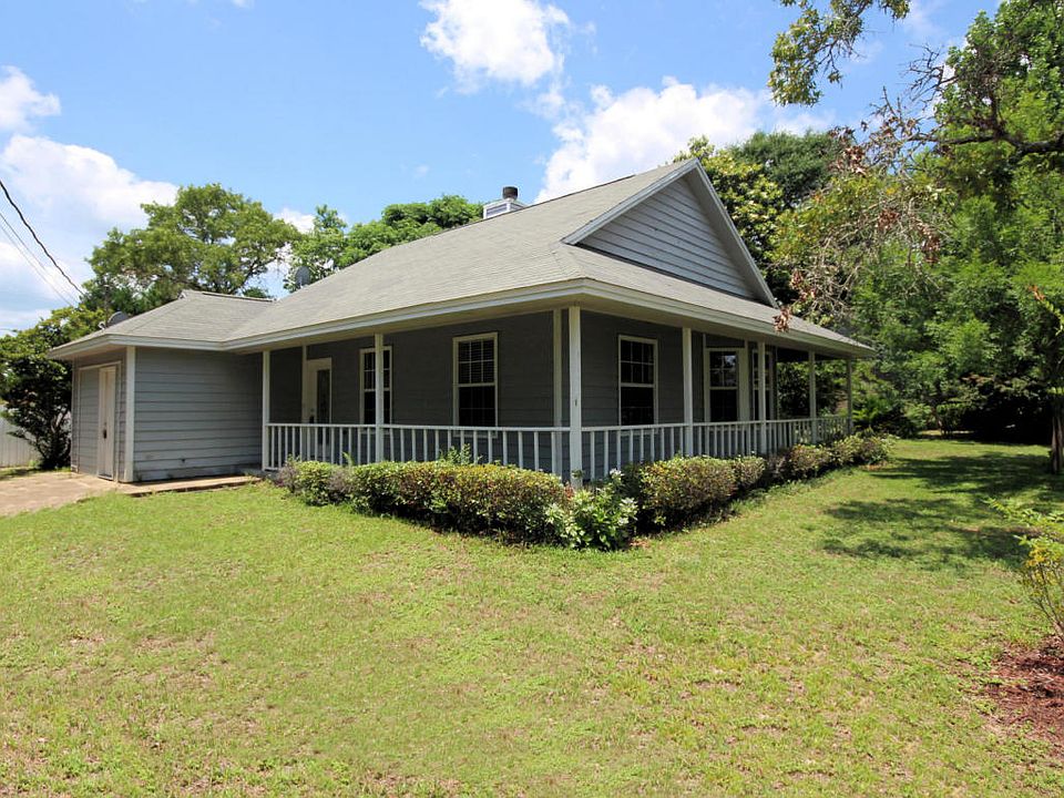 Beautifully renovated 3 bedroom, 2 bathroom, 1 story home with bonus attached OFFICE that features a bedroom, bathroom and kitchenette! This space could easily convert into an apartment. You'll fall in love from the second that you drive up and see the gorgeous wrap around porch. This home has a spacious living room with vaulted ceiling and wood burning stone fireplace! Large kitchen open to dining area that has a beautiful bay window. Master bathroom has double vanities and walk in closet. Yard is privacy fenced and has multiple gates to access the back yard. Home is freshly painted and new windows! All this and it's located South of I-10 in Countryview Estates making this home a great buy! This home is move in ready and ready to be your new home! Schedule your private tour today!