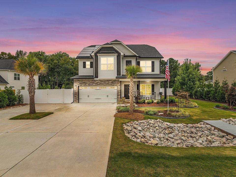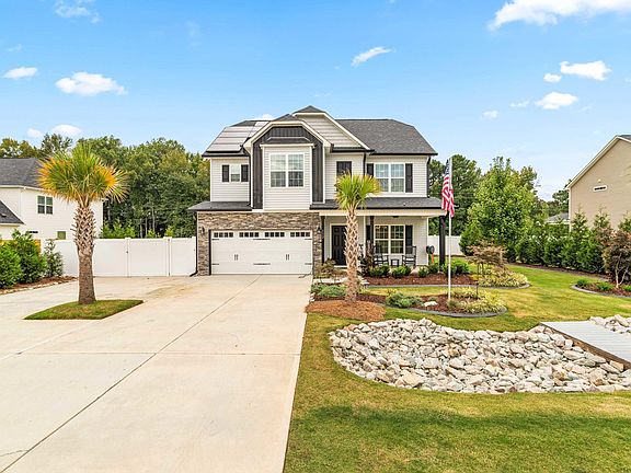 Located in the heart of Archer Lodge on a small secluded street. Built in the summer of 2021 with loads of upgrades and storage options. Conveniently located to highways, schools, and shopping areas. We welcome you to this charming 3-bedroom, 2.5-bath + large bonus room home nestled on over 1/2 an acre. Step inside to find a spacious first-floor layout featuring a formal dining room, a large open kitchen with over sized island, and a cozy breakfast nook. The inviting living room showcases a fireplace and custom features along with crown moulding throughout, creating a warm and elegant feel. Upstairs, retreat to generously sized bedrooms with ample closet space. The private owner's suite offers an oversized 150 sq ft deck overlooking the backyard-perfect for quiet mornings or evening sunsets. Outside, you'll find a beautifully landscaped yard with palm trees, edging, privacy trees & plants, walkways, multicolor wired low-voltage lighting, sprinkler irrigation, and a private oversized vegetable/fruit garden and greenhouse. Additional highlights include a fully fenced in yard, chicken coop, fire pit, side yard parking, and two versatile barns: a 10x12 office with mini-split HVAC and a 12x40 shed with garage door. Modern conveniences abound with solar panels for significantly reduced energy costs, an EV/Tesla charger, Ecobee smart thermostats, garage roof storage, and huge extended driveway. Entertain easily on the screened porch or the extended back patio. Located just minutes from local schools, parks, and shopping-8 minutes to Flowers Plantation, 15 minutes to Wendell Falls, and an easy commute to Wake Forrest, Cary or Raleigh-this custom property blends beauty, comfort, functionality, and a lifestyle that's to hard to pass up, in this rare find!