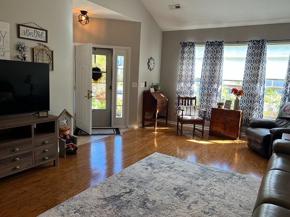 The main floor features hardwood and tile flooring throughout the kitchen and living areas. The recently remodeled kitchen is equipped with new stainless steel appliances, perfect for both everyday living and entertaining. Soaring cathedral ceilings add an open, airy feel to the main living space.