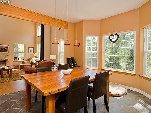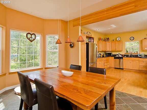 Solid, substantial, comfortable country home. Spacious rooms. Turn key. One-owner, built 1994, well-maintained. Good well. Quality materials - slate and oak floors, "cosmic black" granite counter in kitchen, propane cooktop, efficient woodstove, plus geothermal heat pump from well. Full basement with easy potential for more living space. Double garage, shed, kennel. Approximately 20 minutes from Hood River.
