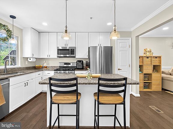 Welcome to 112 Militia Place—an exceptional townhome nestled in the sought-after Seven Oaks community of Odenton. This 3-bedroom, 3.5-bath residence offers 1960,square feet of thoughtfully designed living space, perfectly blending comfort and convenience. Step inside to discover an open-concept main level adorned with beautiful floors and recessed lighting creating a warm and inviting atmosphere. The gorgeous kitchen boasts upgraded countertops, stainless steel appliances, and ample cabinetry, seamlessly connecting to a spacious dining area—ideal for entertaining guests or enjoying big gatherings. Retreat to the expansive primary suite featuring vaulted ceilings, a walk-in closet, and a luxurious en-suite bathroom with double sinks and a tiled tub/shower combination. Two additional bedrooms and a full bath complete the upper level, providing ample space for family or guests. The fully finished walk-out lower level offers versatile space for a home office, gym, or guest suite, complete with a half bath and additional storage. Enjoy serene views from the composite deck overlooking lush woods, offering a private oasis for relaxation. Residents of Seven Oaks enjoy access to a wealth of amenities, including a community pool, fitness center, basketball and tennis courts, and tot lots. Conveniently located near Fort Meade and major commuter routes, this home offers the perfect balance of tranquility and accessibility. Roof 2022, HVAC 2017 est. water heater 2019 est. Experience the lifestyle you've been dreaming of —where comfort meets community. 2 assigned parking spots-