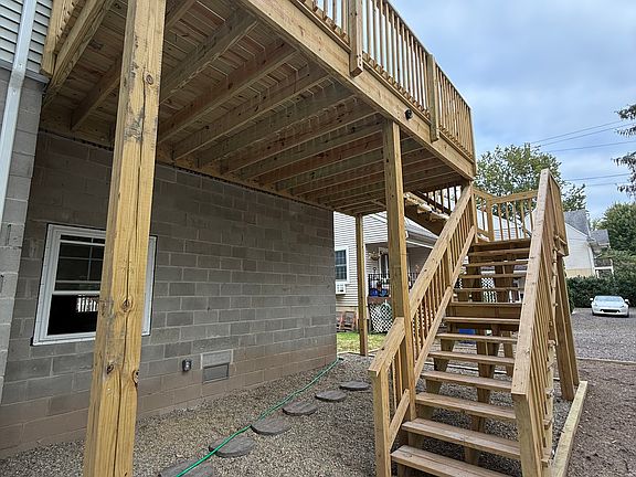 - Brand new deck overlooking neighborhood pond. Large enough for table/couch for outdoor seating area.