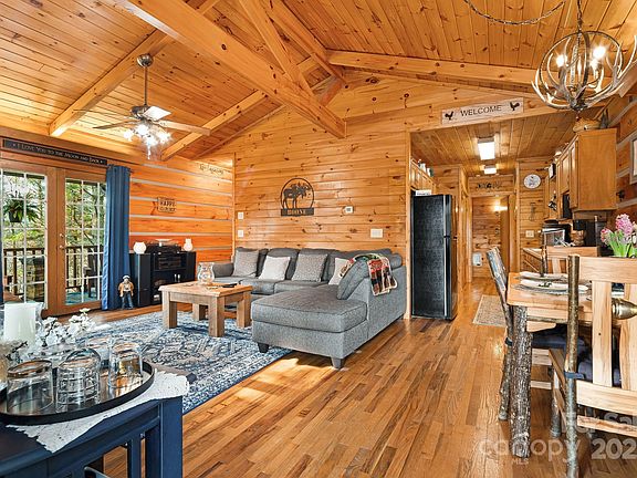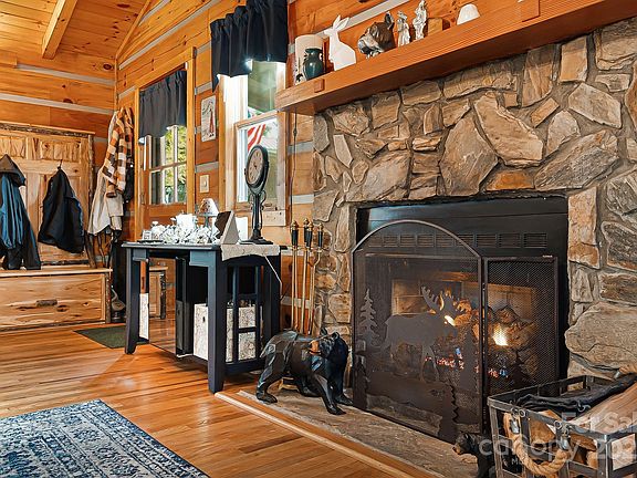 Discover this stunning stone-accented log cabin nestled in the peaceful Laurelwood subdivision, only 7 miles from vibrant downtown Boone NC. Step inside to be greeted by a soaring vaulted ceiling and a stone fireplace that creates the perfect cozy atmosphere during mountain winters. This impeccably maintained 2-bedroom, 2-bath home showcases beautiful wood floors throughout the main living areas and offers indoor-outdoor living with sliding doors opening to a covered back deck. A second uncovered deck in front provides additional space to immerse yourself in the surrounding forest views. Recent upgrades include a new roof, HVAC system, water heater, crawlspace heater, fresh interior and exterior paint, water filtration system, and a fenced in back yard. Whether you're seeking a permanent residence or a mountain getaway, this move-in ready cabin delivers charm, comfort, and low-maintenance living in a community where you can truly disconnect.