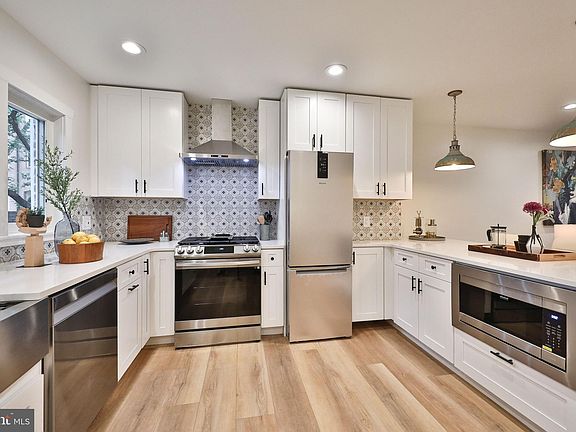 Ideally located on a block that is rarely up for sale, don’t miss this exquisitely renovated 2 bedroom, 2 bathroom unicorn in Logan Square. 112 N Beechwood is nestled on a charming, one block long, pedestrian street complete with the Coxe pocket park and playground. This gem is also located in the award-winning Greenfield school catchment. As you walk up to the house, the cheerful bright Geneva blue door and shutters stand out when paired with pale brickwork, crisp white trim, and are complimented by the newly added window boxes. Once inside, the luxe finishes and gleaming hardwood floors that continue throughout will immediately catch your eye. The gourmet kitchen provides ample room for cooking and entertaining with quartz countertops surrounding a high-end Samsung and Whirlpool stainless steel appliance suite including a gas range. Small touches like the matte black fixtures and Ruvati workstation sink with inserts truly make this kitchen a joy to cook in. The muted Moroccan-inspired tile work paired with the distressed galvanized pendant lights add a flourish to the open concept first floor. The breakfast bar provides a generous countertop space for setting out a buffet or organizing a cocktail area over the 18 bottle Kalemera wine refrigerator. The combined dining room and living room have a wood-burning fireplace with painted brick and a live-edge, custom-made ash mantel as a focal point. The large picture window and rear door allow abundant light to come in and provide a view on the back outdoor living space. Recently hardscaped and re-fenced with decorative globe lighting above, the outdoor patio truly becomes an extension of the first floor. The second floor features two bedrooms nearly equal in size with one overlooking the park and the other, with Juliet balcony, overlooking the back patio. Both have large double door closets and generously sized windows that still allow for furniture placement. Between the two bedrooms in the center of the hall is the full bathroom with a brand-new skylight. The custom, dual-function shower combines a pebbled mosaic floor with quartz surround and bench seating once again combined with matte black fixtures. The double vanity sink is truly a show stopper and allows for plenty of storage. Pulling it all together is a linen textured floor tile. The finished basement provides additional living space for an office, family room, or home gym. Another full bathroom, storage, and a laundry center with LG washer and dryer round out the cohesively designed home. With all new systems including HVAC, electric, plumbing, and roof, this townhome is the definition of turnkey. Everything has been thought through; from the Nest thermostat, to the dimmable recessed lighting throughout, to the Eero wireless internet beacons throughout, to the Schlage keypad entry, to the AC condenser being relocated to the roof for a quiet backyard retreat. Located in the heart of everything you want to be near, restaurants, shops, groceries (2 blocks to Riverwalk Giant), museums, parks (steps from entrance to the Schuykill River Trail), and all forms of public transportation are within easy walking distance. If you find yourself commuting to NYC routinely, the Acela from 30th Street Station to Penn Station can have you to there in an hour and ten minutes. Purchased and completely renovated for personal use, a change of plans has brought 112 N Beechwood to market. Make sure to see it for yourself.