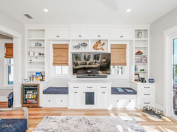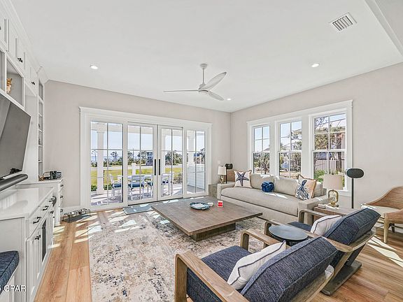 CUSTOM BAY-VIEW LUXURY IN OVATION! This stunning 4 bedroom/4 bath coastal retreat blends refined craftsmanship with unobstructed St. Joseph Bay views in one of Cape San Blas' most sought-after communities. Positioned perfectly to capture glowing sunrises & serene water vistas, this home delivers the kind of coastal living that defines the Forgotten Coast. Inside, a bright & breezy layout showcases upscale finishes throughout. The first floor features its own comfortable living/family room—an ideal spot for guests or movie nights—complete with a wet bar & easy access to outdoor spaces. Upstairs, the main living level is framed by expansive windows & full-glass sliders that frame the bay like artwork, opens to a spacious covered deck perfect for morning coffee or sunset cocktails. The gourmet kitchen shines with custom cabinetry, stainless appliances, an oversized island, pot filler & built-ins designed for effortless entertaining. The living & dining areas flow seamlessly, wrapped in natural light with designer touches at every turn. All four bedrooms include en-suite baths. The third-floor primary suite offers sweeping bay views, a spa-style bath, walk-in closet & a private balcony perfect for sunrise coffee or unwinding beneath the stars. Additional porches, thoughtful storage spaces & luxury finishes throughout make this home as functional as it is beautiful, offering room for guests, workspaces or relaxing retreats. Ovation offers unmatched amenities: bayfront infinity pool, Gulf-side pool, fitness center, clubhouse, tennis & pickleball courts, lush green spaces & deeded beach access. With downtown Port St. Joe's shops, restaurants, marina, parks & year-round community events just a short drive away, you're close to everything while still enjoying the peaceful Cape lifestyle. Call for your private tour & LIVE THE BEACH LIFE!