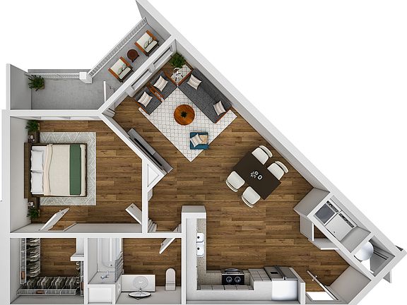Sleek finishesElegant granite countertopsStainless steel appliancesWood-style floors