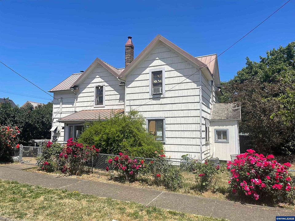 Nice corner lot by City Park. 3 bed, 2 bath. The 1906 house is structurally sounds with a metal roof but needs TLC so bring your creative minds. Fully fenced yard, two car garage. Walking distance to downtown right in the heart of Willamina. 30 min to the Oregon Coast, 10 minutes to Spirit Mountain Casino, 30 minutes to McMinnville.