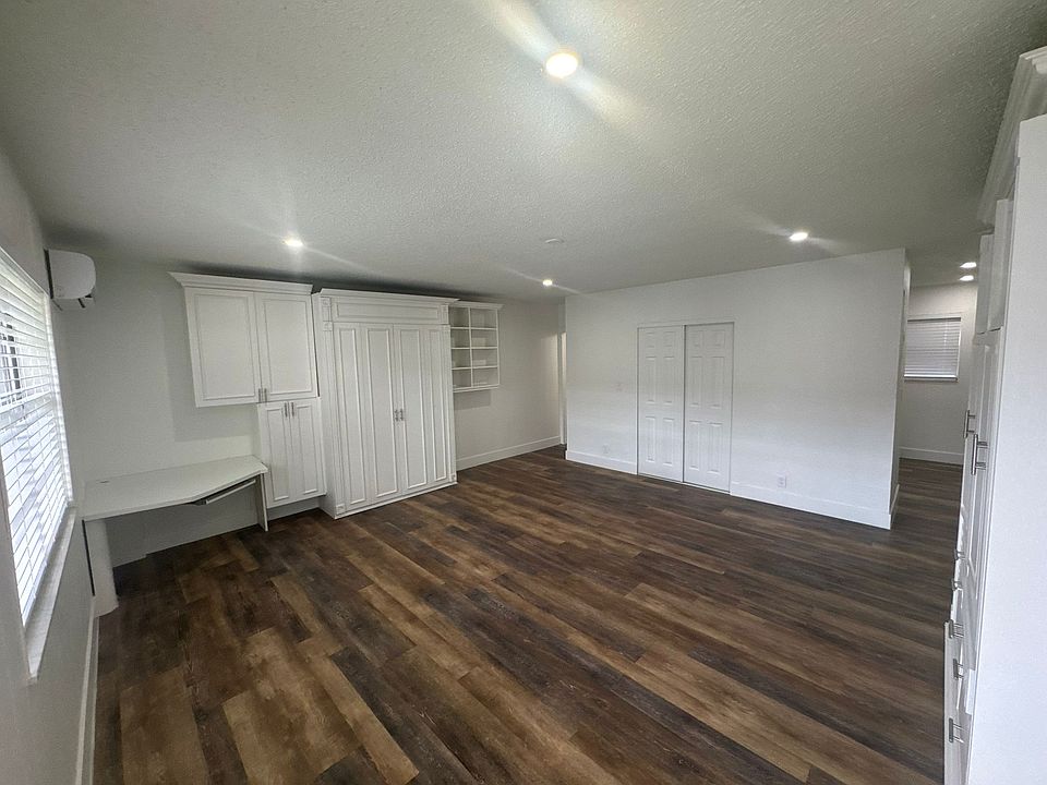 Newly remodel Studio apartment, wooden floors, upgraded Appliances, kitchen & bathroom cabinets. It also includes 1 parking space right in front of the property. Lots of space throughout the Apartment. Mini Split A/C in the units. Property has a nice courtyard away from the parking lot for kids to play safely.