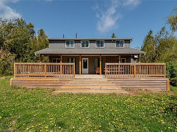 Welcome to 112 Nordic Rd, Your Blue Mountain Escape! Nestled atop Blue Mountain, this charming 4-bedroom chalet offers the perfect blend of rustic charm and modern comfort. This Chalet with a rustic-barn theme, sleeps 11 people. Located just minutes from the North Chair lift, Blue Mountain Village, Scandinavian Spa, and Scenic Caves, this is the ideal year-round retreat for skiing, hiking, and nature lovers.Step into a bright, open-concept living space with soaring ceilings and a spiral staircase overlooking the great room. The modern kitchen is fully equipped, making it perfect for entertaining or cozy nights in.Outside, enjoy a large backyard with a stone fire pit, a spacious deck with a sunken hot tub, and ample room for outdoor gatherings. This home offers endless possibilities in one of Ontarios most sought-after four-season destinations.Your Blue Mountain escape awaits, don't miss this rare opportunity! The U-shaped driveway easily accommodates 6-8 vehicles, making parking effortless.Whether you're looking for a family getaway, an investment property, or a serene retirement retreat.