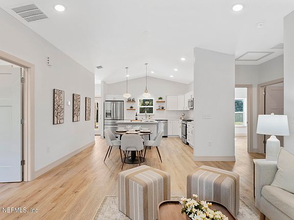 Welcome home to this beautifully built new construction on a peaceful half-acre in San Mateo. Thoughtfully designed with comfort and quality in mind, this home features a split floor plan, vaulted ceilings, and an open layout that's perfect for everyday living or entertaining. Enjoy warm, inviting finishes throughout—quartz countertops, soft-close cabinetry, LVP flooring, and tile showers. Built to last with 2x6 exterior wall framing, R-19 wall insulation, R-22.5 spray-foam roof insulation, LP SmartSide siding, Atlas Pinnacle architectural shingles, Low-E windows, and fiberglass insulated doors. Connected to natural gas, the home includes a gas stove, tankless water heater, and energy-efficient systems. The spacious carport doubles as a great spot for gatherings and includes a gas hookup so your grill can connect directly. With half an acre of open land, you'll love the peaceful setting and endless possibilities.
