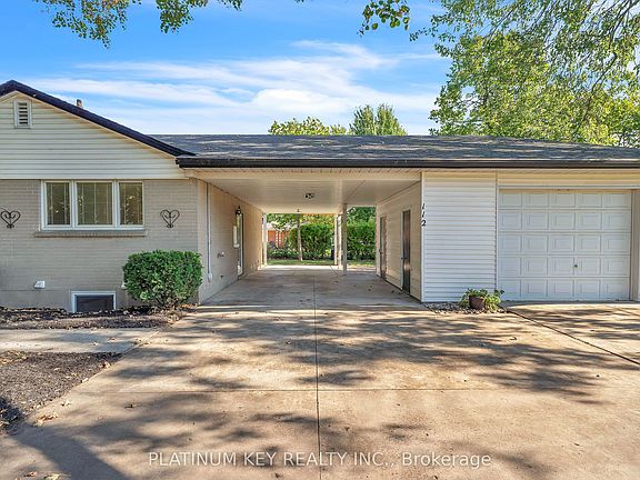 A spacious 3+1 bedroom, 2 bathroom bungalow on a corner lot! This home offers a great opportunity for families, first-time buyers, or anyone seeking a versatile home in a convenient location. The main floor features an open-concept living and dining area with a large bay window that fills the space with natural light. The kitchen includes granite countertops, new stainless steel appliances, and ample cabinetry. On the main level there is also the primary bedroom, two additional bedrooms, and a 4-piece bath. The lower level offers a large, comfortable family room, a 3-piece bath, and a fourth bedroom. There's also a generous unfinished area with multiple storage rooms, providing plenty of space to stay organized. Outside, the property sits on a corner lot with mature trees and includes a 1.5-car garage/workshop with extra storage space, plus a carport and private concrete driveway for additional covered parking. Located in Strathroy, this home is close to schools, parks, shopping, restaurants, and recreational amenities, with easy access to major highways for commuters.