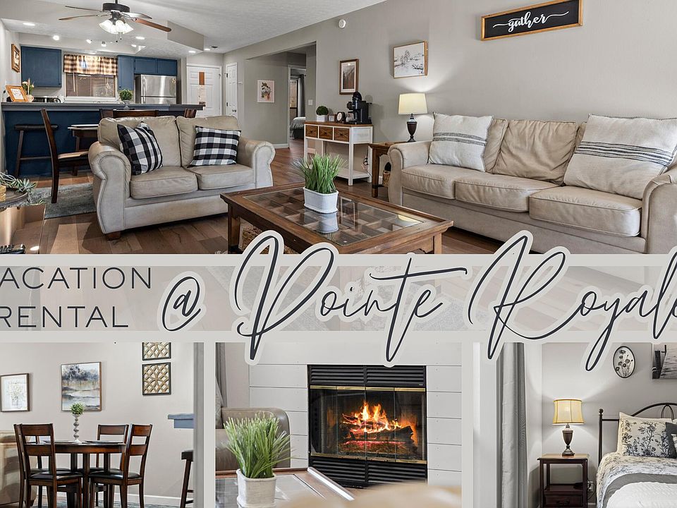 This bright and fully updated 2-bedroom, 2-bath condo offers comfort, charm, and convenience in one of Branson's most desirable communities. Just a short stroll from the clubhouse in Pointe Royale Golf Village, this unit sits high on a bluff, giving you a winter peek at Lake Taneycomo and Table Rock Dam--perfect for your morning coffee with a side of ''Wow.''Inside, you'll find stylish blue kitchen cabinetry, new wide plank white oak luxury laminate flooring, and gleaming stainless steel appliances. The furniture? Included. The vibe? Relaxed and ready. Whether you're entertaining family or hosting guests, the open layout and tasteful furnishings make it easy. This turn-key unit sleeps up to six, making it an ideal vacation rental, investment property, or cozy full-time home.Pointe Royale isn't just pretty views and peaceful vibes--it's packed with amenities. Need a swim? Choose from a massive outdoor pool, a cozy indoor pool, or a gentle zero-entry pool. Golf fan? There's an 18-hole championship course waiting for you. Hungry? The clubhouse has got your back with a restaurant and bar. And yes, tennis and pickleball courts are included, so bring your A-game.Outdoor adventures beckon just minutes away with easy access to Lake Taneycomo and nearby Table Rock State Park, complete with marina, walking trails, and boat rentals. And when you're ready for lights, laughs, and live shows? The Branson Strip is just down the road.This isn't just a condo--it's your next chapter.