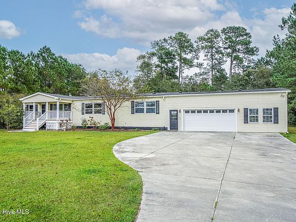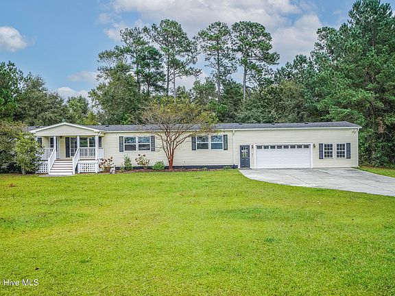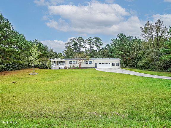 Are you looking for a residential property that offers the perfect blend of space and location, situated on over an acre of land near Emerald Isle and Jacksonville, NC? This 3-bedroom, 2-bath home is an exceptional find. The living room showcases a stunning stone fireplace, flowing effortlessly into a dining area adjacent to the kitchen. Sliding doors lead to the expansive deck, which provides a seamless transition to the generously sized backyard, complete with trees along the property line, ensuring enhanced seclusion. The en-suite features a spacious walk-in closet, full bath with soaking tub, and separate shower. Two additional bedrooms boast large closets, while the oversized 2-car garage offers ample space for vehicles and storage. Recent upgrades include a new roof installed in 2021, as well as new HVAC, windows, and flooring this year. Notably, this property is exempt from HOA fees. Don't miss this exceptional opportunity - schedule a showing today.