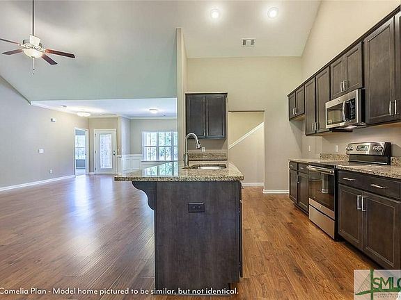 The Camilla plan in Ramsey Landing by Smith Family Homes is under construction with an estimated completion of March 2024. This plan has 2,291 sq ft with 5 bedrooms and 3 baths. Granite countertops and stainless-steel appliances (dishwasher, microwave, and oven.) Gorgeous laminate in the common areas, tile floors in the bathrooms, and carpet in the bedrooms. Included is 3 zones of irrigation, and James Hardi exterior. Model home images shown, to be similar but not identical.