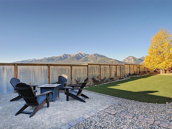 Beautifully updated 3 bedroom, 2 bath home in a lovely subdivision just minutes from downtown Buena Vista. New laminate flooring throughout in 2020, solid wood interior doors and trim, Beetle-kill tongue and groove throughout the open living, kitchen, and dining room. Insulated cellular shades in the bedroom and great room windows. New stainless steel fridge and range/oven in 2023. Patio doors to the exceptional landscaped and fenced back yard. The new landscaping completed in August 2023 includes artificial turf and 17 newly planted shrubs in the backyard. New drip irrigation system in 2023 in front and back yards to all shrubs, trees and flower beds. Covered back patio, fire pit area, newly constructed deck in October 2023, fenced back yard with a large gate. The attached 2 car garage has a newer overhead door and utility sink. 4 parking spaces on the driveway. Breathtaking views of the mountains. Close to the Arkansas River, hiking, biking, ski areas and downtown shops in Buena Vista. This lovely, move-in ready home is ready for you to enjoy.