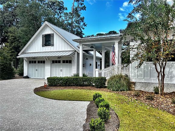 This beautiful Southern Living Design home is located on the 16th green of the King and Prince Golf Course in Hampton Plantation. Antique brick pavers and steps lead up to a large rocking chair front porch. This home has so much to offer such as pine flooring throughout the main floor, antique doors throughout the main floor and shiplap in the entrance hall that carries into the open family room and eat-in kitchen. There are wooden beams in the family room and a beautiful antique brick fireplace. There is large screened porch off of the family room overlooking the golf course. There are even 2 painted rugs on the floor of the screened porch! The kitchen has quartz countertops, lots of storage. a large island with seating, a beautiful antique brick backsplash and a large eating area with windows all around to enjoy the view. A laundry room/mud room located off of the kitchen leads to a covered walkway to the 2 car garage.There is also a den (or could be used as a formal ding room) off of the family room that is flanked by wooden barn doors. The den has wainscoting and a wood ceiling. Beautiful antique doors lead into the office (which could also be the 4th bedroom)which is located off of the entrance hall. The office features wainscoting and a treated wooden ceiling. There is a full bath in the office which is also accessible from the hallway. The large primary suite is located on the main floor overlooking the golf course. The primary bath features 2 large vanities, a large walk-in shower, built-in storage and 2 walk-in closets. Upstairs features another seating area with pine floors, and a coffee bar with a wine fridge. There are 2 large carpeted bedrooms upstairs with walk-in closets and a jack and jill bath with 2 sinks. There is attic storage off of each of the bedrooms. There is an unfinished space above the garage with plumbing connections. 2 HVAC units, foam insulation in the attic and under the floors, whole house water conditioner system, double pane windows, a well for irrigation, security system, metal roof and Hardie Plank siding are just a few of the other features of this house. This home is like new and has been meticulously maintained by the current owners. Great price for this lovely home! All of the furnishings are negotiable. Owner occupied, but very easy to show with short notice.