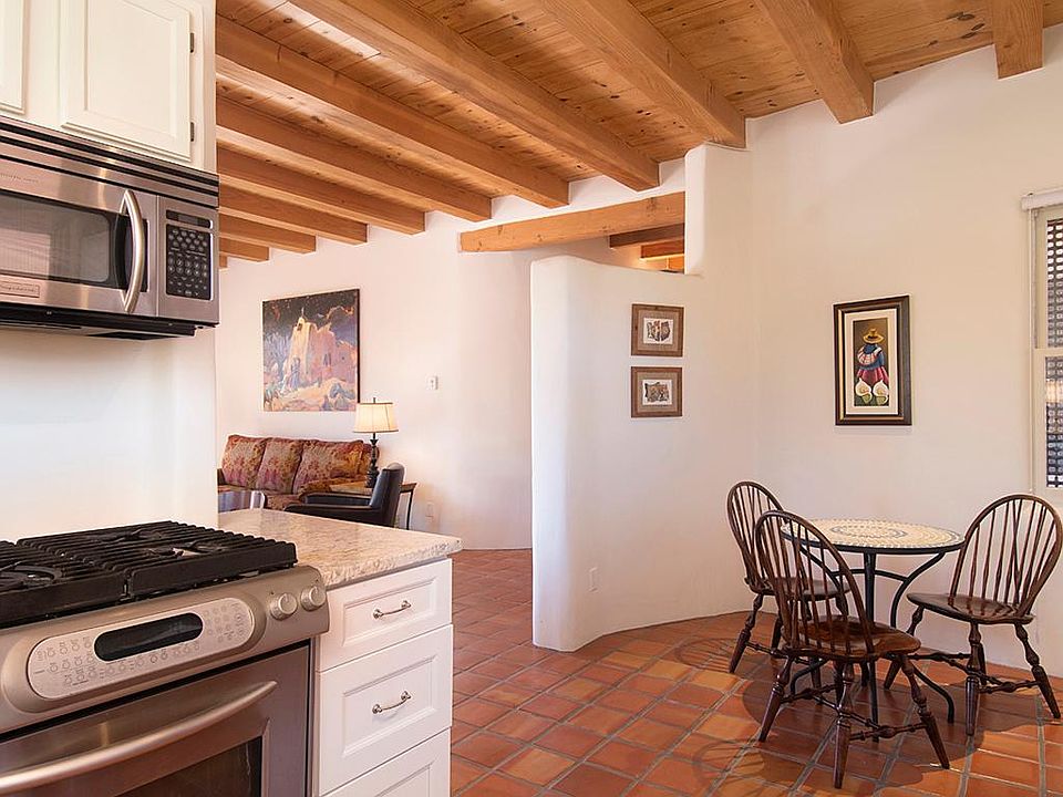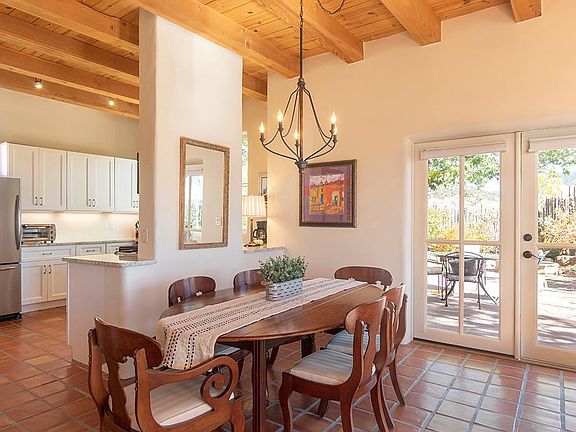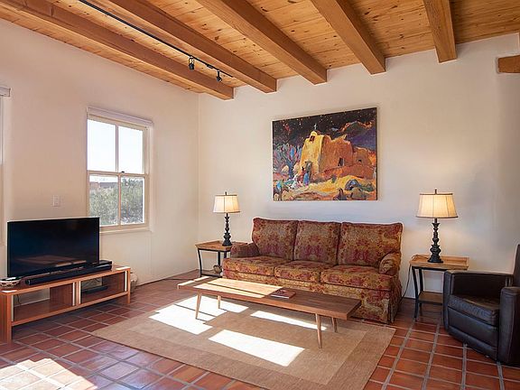 Historic Eastside with Views of the Sangre de Cristo Mountain Range Views, 3 Bedroom, 2 Baths, Historic Eastside. From the moment you walk into Casa Dos, you feel the magic and charm that Santa Fe's historic eastside offers! Views of the Sangre de Cristo mountain range are seen from each window offering extraordinary light and views. Just minutes from walking trails through the Santa Fe National Forest arroyos and minutes from Canyon Road and the Historic Plaza. Casa Dos is privately located on a gravel and dirt road with an enclosed and private stone patio for al fresco dining. French Doors open from the patio into the living/dining area of the home which opens to the abundant kitchen with stainless appliances and a gas stove. This 30-Day Rental has one queen, ensuite bath, and another queen and 1 double bedroom that share a hall full bath all on one level with plenty of space and privacy. Each bedroom has a TV connected to the home's high-speed Wi-Fi. Offering tile floors, wood burning kiva fireplace, radiant heat, 2 car heated garage, washer/dryer, area rugs, gas BBQ grill, and smart TVs for streaming with cable TV in the living room only. All Wheel Drive or 4x4 applicable for winter months. Approximately 1800 square feet. So sorry, No pets allowed. BL-222411 Speak with Donna Jones White