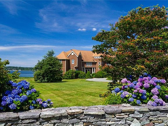 CUSTOM-BUILT WATERFRONT RETREAT WITH MOORING (DOCK PLANS COMPLETED AND PERMITTING IN PROGRESS AND AVAILABLE TO THE FORTUNATE NEW OWNER OF THIS EXCEPTIONAL PRIVATE HOME). Sited at the end of a lovely cul-de sac off of Tiverton's renowned Nanaquaket Road, on 3 west-facing elevated acres. Lush, sweeping lawns roll to over 250 feet of water frontage where a deck and private shoreline stairs lead to secluded beach area where one can enjoy all that the waterfront lifestyle offers: boating, sailing, swimming, kayaking, jet skiing, canoeing, paddling. With superb 2x6 construction, this 5417 sq. ft. home offers panoramic water views, 4 beds and 3.2 baths. In addition to master suite, 2 second floor bedrooms have en-suite baths, and all 3 second floor bedrooms have water-facing balconies. A large 16'x19' second floor bonus room offers many options: Media or Game room or gym. Gracious, sunny entry, exceptional dining and formal living rooms, sought-after 1st floor executive office, and kitchen with adjoining family room which allows for entertaining ease for family and guests. Centrally located with access to major highways. 30 minutes to TF Green International Airport, 60 minutes to Boston, 30 minutes to Providence and to vibrant Newport! This property is ideal as a year-round or vacation home.