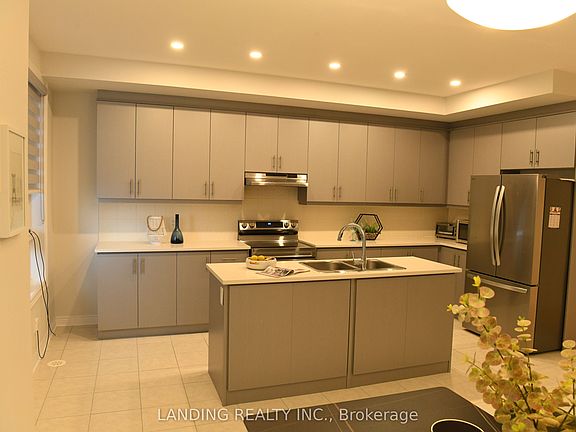 This bright and spacious corner-unit freehold townhouse is located in a newly developed Markham community and offers a modern, functional layout perfect for family living. Featuring four bedrooms, hardwood floors on the second floor, and a sleek kitchen with stainless steel appliances, the home is freshly painted and upgraded throughout. The ground level includes a recreation area, a spacious bedroom, a full bathroom ideal for guests and direct access to the double car garage. On the second floor, large windows fill the open-concept living and dining area with natural light, while the breakfast area opens to a huge terrace perfect for summer BBQs. The third floor boasts three generously sized bedrooms, providing ample space and privacy. With a double private driveway, parking for four cars, and $$$ spent on upgrades, this home is steps away from community centres, schools, parks, shops, and restaurants, and just minutes from public transit and major highways, making it the perfect blend of style, comfort, and convenience.