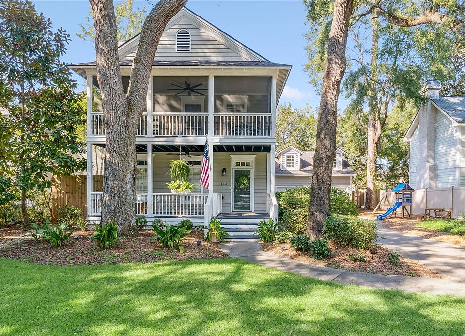 A quintessential southern home on the east coast! This home is located mid-island; close to what you need but with plenty of privacy for relaxation. A classic craftsman home such as this one has double front porches and tons of curb appeal. This home has an airy feel with a spacious living and dining area flowing straight into the chef's kitchen, accompanied by a pantry and highly functional mudroom/laundry area. The primary suite is upstairs featuring a private screened in porch (!) and ensuite bathroom. Down the hall are two other bedrooms sharing a full bathroom.