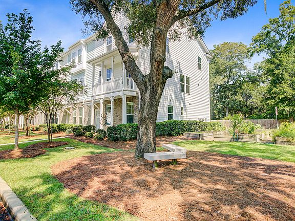 Welcome to Lowcountry living at its finest. This beautiful end-unit townhouse is gracefully tucked beside the community garden and a pocket park shaded by sweeping oaks draped in Spanish moss--a classic Southern backdrop that feels both timeless and inviting. The main living area, located on the second floor, is the heart of the home. The open layout is perfect for entertaining, featuring an upgraded kitchen with quartz countertops, a stylish tile backsplash, stainless steel appliances, a gas range, and a large island at its center. A custom pantry provides thoughtful storage, and a balcony off the kitchen makes grilling and gathering a breeze. Flow seamlessly into the dining area and spacious living room, accented with luxury vinyl plank flooring, custom shelving, and shiplap wall with aa cozy electric fireplace. Step outside onto your private balcony to savor views of the oaks, a quiet morning coffee, or an evening glass of wine. Upstairs, the primary suite offers a custom closet and an upgraded bathroom with dual vanities and a beautifully tiled shower. Two additional bedrooms share a full bath, and the laundry closet is conveniently located on this level. On the first floor, you'll find a flexible bedroom with a half bath, perfect as a home office, workout room, or playroom adapting to your lifestyle with ease. A two-car garage rounds out the home and is currently enjoyed as a workshop/woman's cave, offering plenty of room for projects or hobbies. Storage closet, hurricane shutters, and a tankless water heater. With sunlight pouring through every level and the charm of the Lowcountry just outside your door, this home blends warmth, function, and Southern beauty in one. Situated in a prime location, this townhome keeps you close to everything just minutes to Daniel Island, Mount Pleasant, the airport, and Charleston's beautiful beaches. From morning walks under moss-draped oaks to evenings exploring all the Lowcountry has to offer, this end-unit combines convenience, comfort, and charm. Don't miss the chance to make it yours!