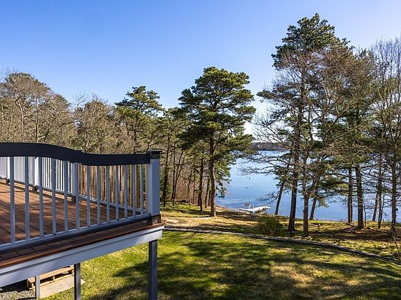 Spectacular waterfront sanctuary on Great Herring Pond, a fully recreational pond. Set on over 6 acres, this home is sure to impress. Upon entering the home, guests are greeted by a grand foyer adorned with elegant accents and bathed in natural light. The main living areas with high ceilings boast an open-concept design seamlessly connecting the gourmet kitchen, formal dining room, and spacious living room. Cathedral ceilings and hardwood floors lend an air of warmth and sophistication to the space while a wall of windows offer breathtaking views of the sparkling pond beyond. Floor-to-ceiling windows and sliding glass doors open onto a sprawling deck offering the ideal spot for al fresco dining, morning coffee, or simply relaxing. This home has too many amenities to list. A must see! Great opportunity to add your touch in the primary suite with Juliet balcony. Property being sold on a 6 acre lot or on a 3 acre lot. See MLS#73230886 and MLS#73230888. Private property do not drive by!