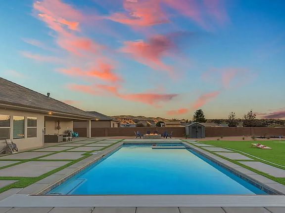 Escape to the desert this winter in an immaculate, well-equipped and fully-furnished home in a quiet and quaint neighborhood. Enjoy an extended stay in the beautiful open concept kitchen, spacious rooms, comfortable beds, and enviable master suite with stunning separate tub & shower. Park your RV, side-by-side or boat on the south side of the lot. Centrally located to an abundance of activities, including 30 minutes from Zion National Park, 10 minutes from Sand Hollow Reservoir, and all the hiking, biking, golf and recreation that the St. George area is famous for. Cool off after a warm day by walking down to the Virgin River at Confluence Park, and recount your day exploring while grilling on the back patio, stargazing around the fire pit, swimming in the private spa/pool, or chilling out in the putting green. You're sure to enjoy every minute of your time in this pleasant home and area.