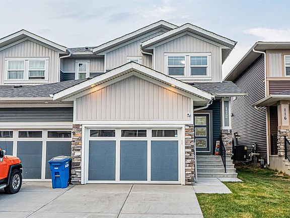 Welcome to this front garage duplex in Airdrie offering 4 bedrooms and 3.5 bathrooms. Upstairs you will find 3 bedrooms including a primary with ensuite, a second full bathroom, and laundry is upstairs for added convenience. The main floor features a spacious living room, dining area, and a modern kitchen with stainless steel appliances, ceiling-height cabinetry, and a half bathroom. The backyard is fully fenced and landscaped with a deck and BBQ gas line. The basement has an illegal suite with separate entry, large living room, 1 bedroom plus a den, kitchen, and full bathroom, and is currently rented, making it an excellent option for extended family living or mortgage helper potential. Don’t miss out on this incredible opportunity—schedule your viewing today.