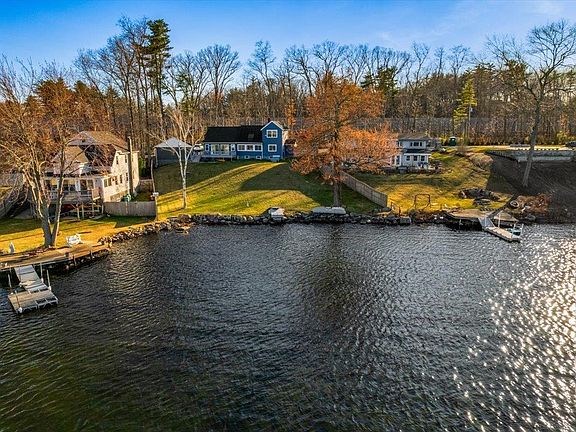 Beautiful, well maintained home with 100 feet of lake frontage; located in a quiet cove on Canobie Lake in Windham NH! This home offers Picturesque views of the lake from every room! Nestled on a quiet private road, this charming fully updated home won't disappoint. First floor open concept living area with cathedral ceiling, electric fireplace and large windows overlooking the lake, includes a kitchen with flawless quartz countertops, glass tile backsplash, stainless steel appliances and open dining area. The First floor also includes 2 bedrooms, a viewing room, full bathroom and a large great room. Walk up to your private Second floor bedroom en-suite with breathtaking panoramic water views. Pristine hardwood floors throughout the entire home! Stepping outside through the double glass sliders from the viewing room onto a large oversized deck with patio you'll find a lush, fenced-in private waterfront lot. The expansive, well-landscaped property leads to endless opportunities for outdoor enjoyment and relaxation while taking in the Friday night fireworks from Canobie lake all summer long. Enjoy the abundant natural beauty surrounding this exceptional lakefront home! This turnkey home with countless upgrades offers the many sought after amenities of Windham with the convenience of Salem shopping, dining and highway access. This lakefront home is ready to be yours! DELAYED SHOWINGS! Open House 4/12 & 4/13 11-2PM