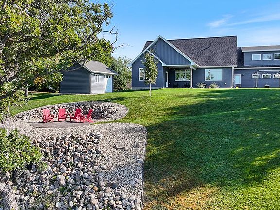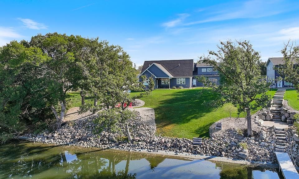 Welcome to this stunning lakefront property on Lake Hendricks. Set on a half-acre lot with 88 feet of shoreline, this home was custom-built in 2018 with a thoughtful 2021 addition. Built with pride by local contractors using locally sourced materials, the home reflects quality and craftsmanship at every turn. Offering the feel of new construction without the price tag, it showcases high-end custom features and finishes that are already complete and ready to enjoy. The main level is designed for lakeside living with an open-concept layout that features 9-foot ceilings and floor-to-ceiling windows framing breathtaking views of the water. The dining area opens to a covered stamped concrete patio, perfect for summer gatherings and sunset dinners, while the kitchen, dining, and living spaces flow seamlessly together. The kitchen features slow-close cabinetry, quartz countertops, tile backsplash, stainless steel appliances, and a large pantry. The primary suite is a private retreat featuring dual vanities, two walk-in closets, and a floor-to-ceiling tiled walk-in shower. Another bedroom, full bath, and a beautifully designed laundry area complete the main floor. Custom upgrades include: all bathrooms featuring tile surrounds, 8-foot doorways w/custom built doors, trayed ceilings, transom windows, in-floor heat capability, designer lighting, soffit outlets with switched lighting, and numerous other thoughtfully crafted architectural details that elevate the home throughout. Car and hobby enthusiasts will appreciate the four fully finished garage stalls. The 2021 addition expanded the original home with a heated and cooled 28x30 garage space and an upper loft, complete with its own climate controls. This versatile area can serve as a third bedroom, entertainment space, office, or guest suite (with private access). Outside, the home continues to impress with 3 patio spaces, including one designed for a hot tub and another custom-built gathering space by the water’s edge. A 12x18 lakeside shed with concrete floors, power, and an overhead door provides the perfect spot for golf cart parking and storage of lake toys. A lawn sprinkler system keeps the yard beautifully maintained with ease. With in-floor heat capabilities and strategic design throughout, the home is as functional as it is beautiful. Perfectly located on a quiet dead-end road within city limits, you’ll enjoy the rare convenience of city water, sewer, and utilities—no septic or rural water to maintain. And beyond the property itself, Lake Hendricks is a year-round treasure, offering fishing, boating, and water sports in the summer, along with ice fishing and numerous events in the winter. Combining the luxury of a custom build with the convenience of being fully finished and move-in ready, this 3-bedroom, 3-bathroom, 4-stall garage home offers open living spaces, multiple areas to entertain, and unmatched lakefront living on Lake Hendricks. Schedule your showing today!
