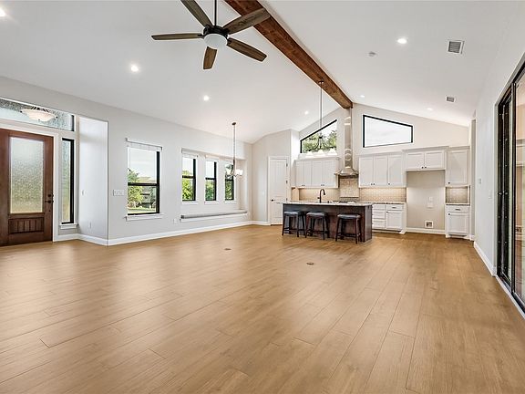 This custom-built 2018 residence blends modern comfort with the relaxed charm of lake life. Designed with a U-shaped layout, the home centers around a stunning private pool with waterfalls and a pergola covered dining space, your own backyard retreat. The views are peaceful backing to the well groomed golf course. Inside, you’ll find 3 spacious bedrooms and 2 bathrooms, including a primary suite with two separate walk-in closets, a walk-in shower, and a soaking tub. The open living areas flow seamlessly outdoors to a large cooled porch, complete with privacy shades, perfect for relaxing evenings watching TV. The full outdoor kitchen makes entertaining effortless. Additional highlights include a 3-car garage plus dedicated RV parking with power supply, ensuring space for all your vehicles, toys, and guests. Living in Point Venture means more than just a home it’s a lifestyle. Enjoy direct access to a vibrant community with a 9-hole golf course, tennis and pickleball courts, a waterfront park with boat ramp, community pool, workout facility, and even a floating restaurant on Lake Travis.