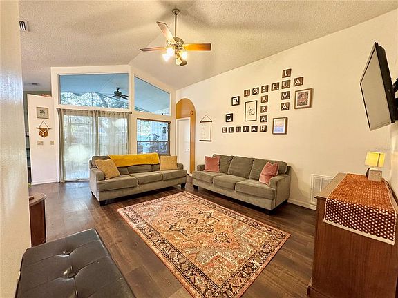 Welcome home to this beautifully maintained 3-bedroom, 2-bath home offering an inviting open floor plan, vaulted ceilings, and a comfortable, airy ambiance throughout. Luxury vinyl plank flooring enhances the main living area, adding both style and durability to your new home. With a split-bedroom layout, the spacious primary en-suite is perfectly positioned for privacy, creating a peaceful retreat of its own. This home has undergone thoughtful upgrades for comfort and peace of mind, including new ductwork, a dimensional shingled roof in 2023, range, disposal and dishwasher, an upgraded guest bathroom shower, and a freshly painted exterior all in 2025 —truly move-in ready from day one. Step outside to enjoy your own private sanctuary: a large, beautifully shaded, fully fenced backyard with mature landscaping, perfect for play, pets, gardening, or simply relaxing. A screened lanai overlooks this tranquil outdoor space, offering the ideal spot for morning coffee or evening unwinding. Located just five minutes from LEGOLAND Florida Resort, this home places you at the center of fun and convenience. Winter Haven is one of Central Florida’s most desirable communities, celebrated for its world-famous Chain of Lakes—26 interconnected lakes where residents enjoy boating, fishing, kayaking, waterfront dining, and stunning sunsets. The charming downtown district offers boutique shops, local restaurants, farmers markets, parks, and year-round cultural events. With Orlando and Tampa both within an hour, you’ll have easy access to major airports, theme parks, sports arenas, concerts, and premier shopping—while still savoring the relaxed, welcoming atmosphere of a true lake-lover’s paradise. Enjoy modern updates, a peaceful backyard retreat, and a location that balances adventure with tranquility. This Winter Haven gem has everything you’ve been waiting for.