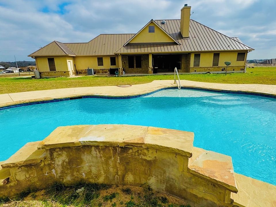 Escape the city's hustle and bustle and immerse yourself in the tranquility of country living. This spacious 4 bedroom, 2.5 Bath home boasts a 3 acre size yard with pool and a two car garage and gym providing ample space for your pets or relaxation. With its three acres of lush grass, it's an ideal spot for outdoor activities and stargazing. Nestled in a quiet and safe neighborhood, this property is just a hour and half from Austin and 30 minute drive from San Antonio.