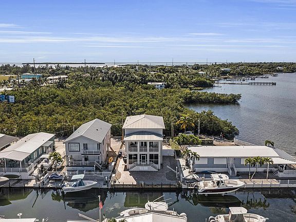 Escape to the Florida Keys and enjoy Bay Views, brilliant Sunsets, and effortless Boating Access from this stunning 3-bedroom, 2.5-bath canal-front home just one lot from Florida Bay. Designed for island living, the first level offers a spacious screened waterside patio perfect for entertaining or relaxing. Watch the game on the big-screen TV, cook in the outdoor kitchen, or unwind by the water as the sun sets. A convenient half bath completes this ideal gathering space. Upstairs, the open kitchen features granite countertops, stainless steel appliances, and plenty of room for friends and family. The adjacent living area and balcony showcase sweeping Bay Views and colorful Sunsets, creating the perfect backdrop for conversation and connection. The entire top floor is dedicated to the primary suite a private sanctuary with panoramic water views, a walk-in closet, and a spa-like ensuite bath with dual sinks, a jacuzzi-style tub, and separate shower. An elevator provides easy access, and the quiet cul-de-sac location with no front neighbors offers peace and privacy. Fully furnished and move-in ready, this home captures the essence of the Keys Island Lifestyle where every day ends with a sunset and every moment feels like a getaway.