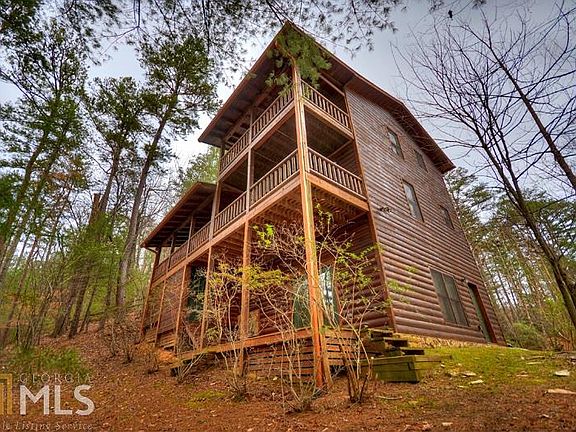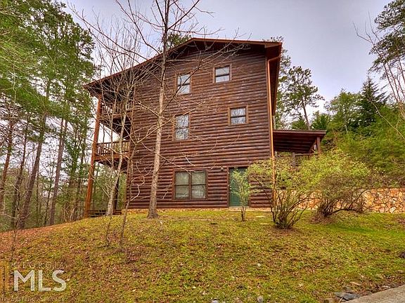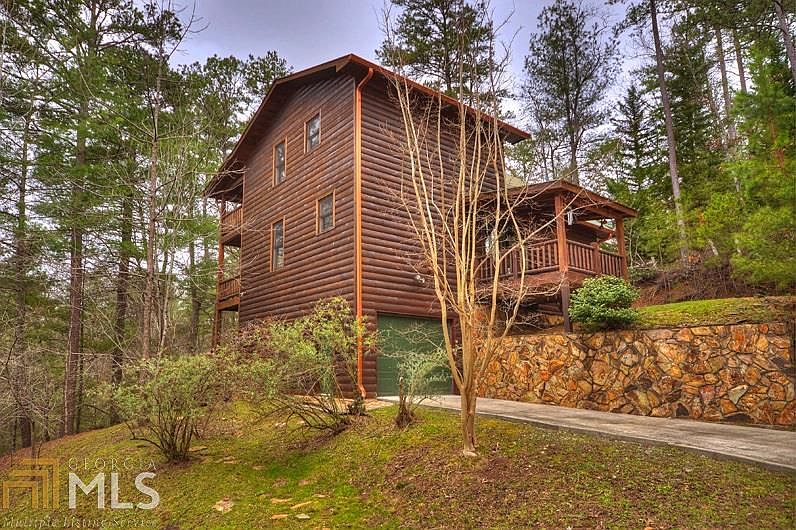 Escape to the mountains with this 2BR/3BA cabin in Buckhorn Estates. Cabin features great room with stone fireplace (gas logs), cathedral ceiling/exposed beams, wide plank wood floors, granite countertops in kitchen, pantry & room for dining. Bedroom & bath on main and upper, both masters. Additional flex room in basement can be used as bedroom. Full bath in basement. Full length rocking chair porch (feels like youre in a treehouse) & upper level porch off bedroom. 1 car basement garage, storage area, concrete driveway, & whole house 12K Generator! Located in mountain community between Ellijay & Blue Ridge w/all paved roads.