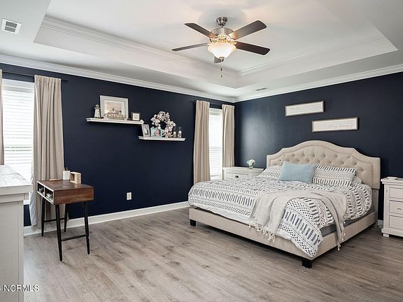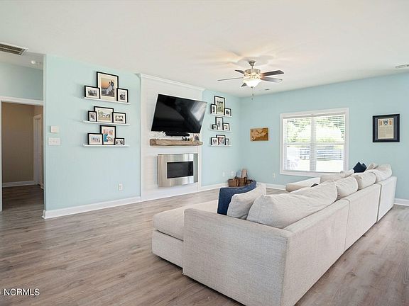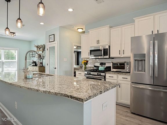 Nestled in the highly coveted neighborhood of Lindenrain, this stunning single-story home boasts 4 bedrooms and 2 bathrooms, offering both comfort and elegance. With its beautiful curb appeal and inviting front porch, you'll be charmed from the moment you arrive. Enter inside to a bright and open floor plan that seamlessly connects the formal dining area and the massive living room, complete with a cozy fireplace. The adjacent kitchen is a chef's dream, featuring granite countertops, a breakfast bar, stainless steel appliances, a pantry, and an eat-in dining area. The spacious owner's suite is a true retreat, offering dual vanities, a tiled walk-in shower, a luxurious soaking tub, and a custom walk-in closet. Three additional bedrooms and a full bathroom provide ample space for guests. Outside, the covered patio is perfect for grilling and entertaining, while the expansive fenced-in backyard offers plenty of room for outdoor activities. Located just a short drive from Historic Downtown New Bern and Carolina East Medical Center, this home combines convenience with luxury living. Call us today to schedule your private tour.
