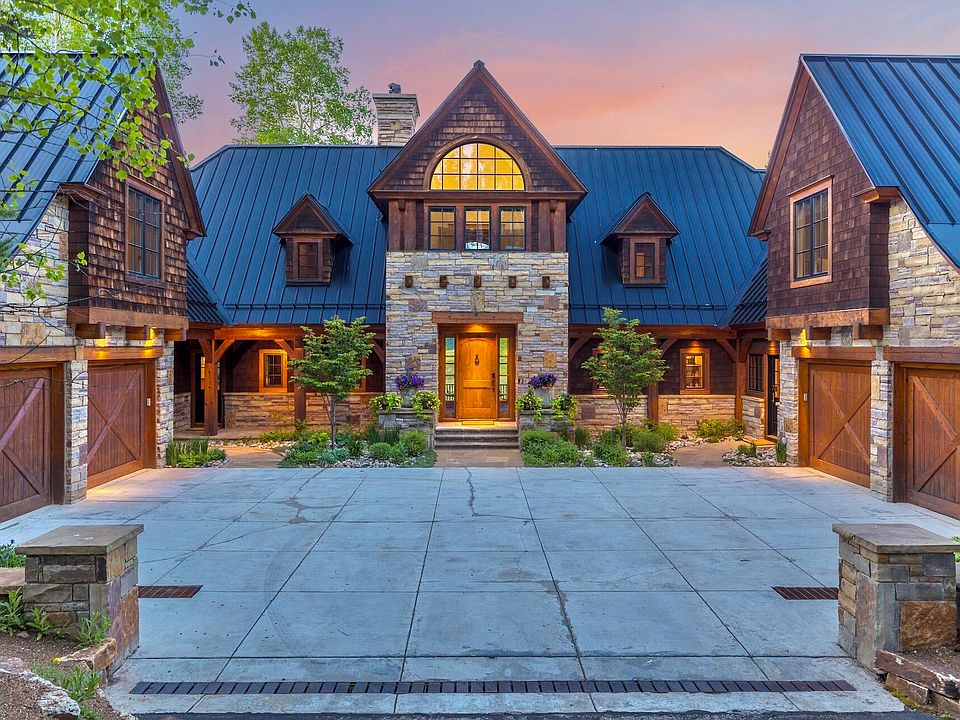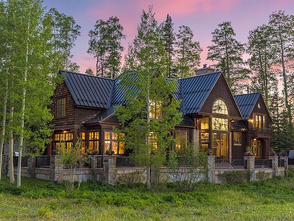 Discover unparalleled mountain living in this exquisitely refined 7-bedroom home, ideally situated adjacent to 26 acres of open space and the Galloping Goose ski trail. Enjoy sweeping 180-degree views of the Sneffels Range framed by expansive floor-to-ceiling windows that also highlight tranquil willows, spruce, and aspen. Recently updated with contemporary furnishings, new kitchen countertops, luxurious bathrooms, and a remodeled apartment and media room, this classic gabled retreat is perfect for families or entertaining guests. Embrace the convenience of ski-in/ski-out access to Bridges or Galloping Goose. Additional features include an office, rec room, custom dog wash, and a 4-car garage with ample storage. A spacious patio with a hot tub beckons for relaxation.