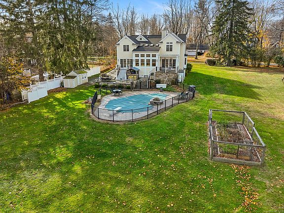 Welcome to this beautifully maintained home in sought-after South Ridgefield, proudly built by well-known local builder Reed Whipple and expanded in 2007 by Roger Provey. Set on stunning park-like, level grounds, the property feels like a private retreat with an in-ground heated pool, waterfall, tiki bar and pergola - perfect for relaxing or entertaining. Inside, the home is open and airy with exceptional natural light from a multitude of windows. The main level features a spacious dining room, study, office, and half bath along with the central "heart of the home" - a gorgeous chef's kitchen with stainless steel appliances, granite counters and abundant cabinetry. The adjoining breakfast room flows into the vaulted great room with floor-to-ceiling windows, while the comfortable family room offers a cozy fireplace. Hardwood floors run throughout. Upstairs, the primary suite includes two walk-in closets and a beautifully updated full bath. A large multi-purpose room also features an ensuite bath, while two additional well-sized bedrooms share yet a third full bath. The finished lower-level rec room adds even more flexibility. With a whole-home generator, a fantastic neighborhood setting and easy access to all commuter routes down county, this is a special opportunity. Pride of ownership throughout. Don't miss it out on this one - it won't last!