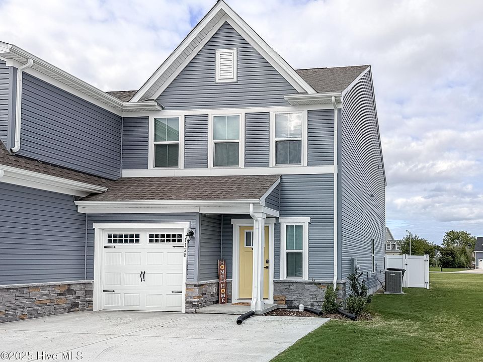 Completed in May 2025, this immaculate 3-bedroom, 2.5-bath townhome offers modern, low-maintenance living in the sought-after Tooley Harbor community. The first floor features durable LVP flooring throughout, a spacious great room flowing into a kitchen with oversized island, and a bright dining area. Upstairs you'll find three generous bedrooms, large laundry room and two full baths. A fenced backyard and an attached garage provide outdoor privacy and convenient storage.