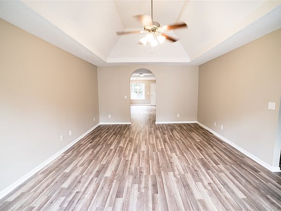 NEW paint, all NEW fixtures, NEW granite counter tops in kitchen and both bathrooms, NEW laminate flooring throughout, NEW stainless steel appliances (smooth top range, microwave, dishwasher and refrigerator), natural stone kitchen backsplash, pantry, split bedroom plan, eat-in kitchen, ceiling fans, attic storage, double vanity in master bath, walk-in master closet, two out buildings, and located in a quiet cul-de-sac.